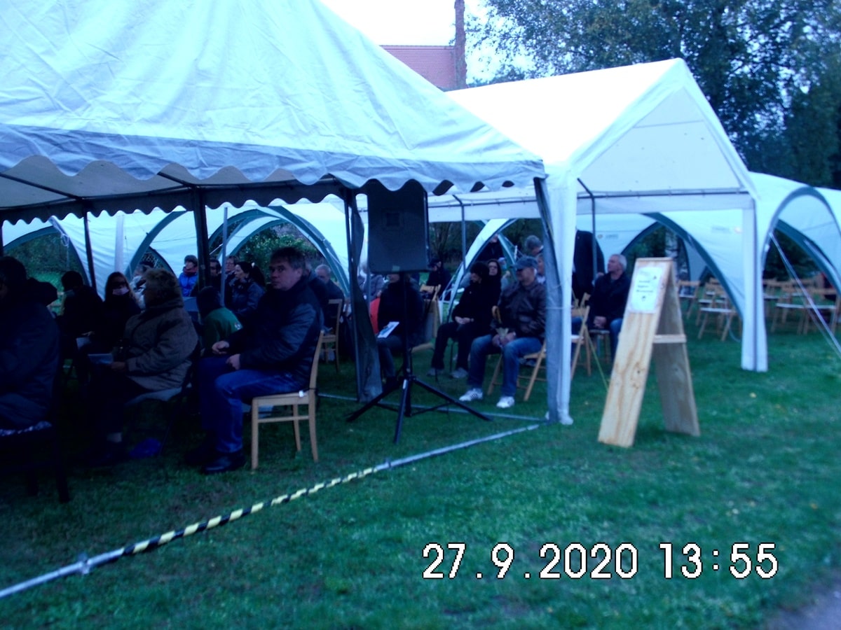 Da Wegezin über einen schönen Festplatz zwischen Kirche und Dörphus verfügt war schnell entschieden den Festgottesdienst Open Air zu feiern und in der sanierten Kirche in Wegezin Führungen zu veranstalten. Ein Termin Ende September war ausgemacht und die stabile gute Wetterlage stimmte alle Beteiligten optimistisch. Am Sonntag, den 27. September 2020 ab 14:00 Uhr sollte der feierliche Abschluss der Sanierung erfolgen.