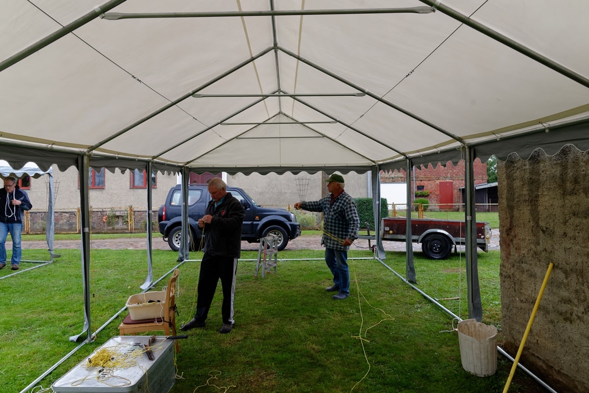 Die Kirchengemeinde Anklam stellte zusätzlich zu den vorhandenen 5 kleineren Zelten zwei 4 x 10 Meter Zelte und Veranstaltungstechnik zur Verfügung. Ein herzliches Dankeschön nach Anklam.