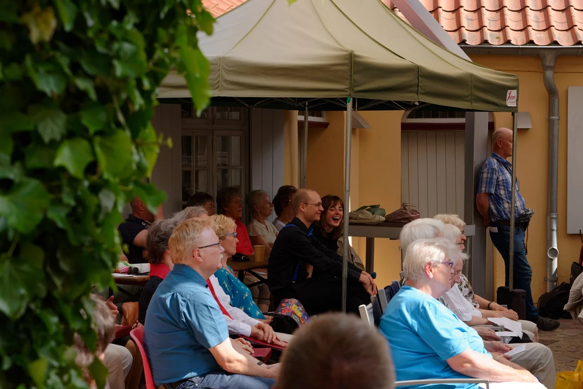 Das Haus St. Spiritus wurde vor 750 Jahren als Hospital gegründet. Seit 1993 ist es das sozio-kulturelle Zentrum in Greifswald und bildet einen Zugang zur Kultur. 30 Jahre Chor im St. Spiritus waren der Grund für das Festkonzert am letzten Sonntag im Juni 2023. Die große Open-Air Bühne im Hof des Zentrums bot den eindrucksvollen Rahmen für das Konzert und der Zuhörerbereich war bis auf den letzten Platz belegt. In 3 Stunden zeigten 4 Chöre ihr Können und es war ein Genuß zuzuhören und dabei zu sein.