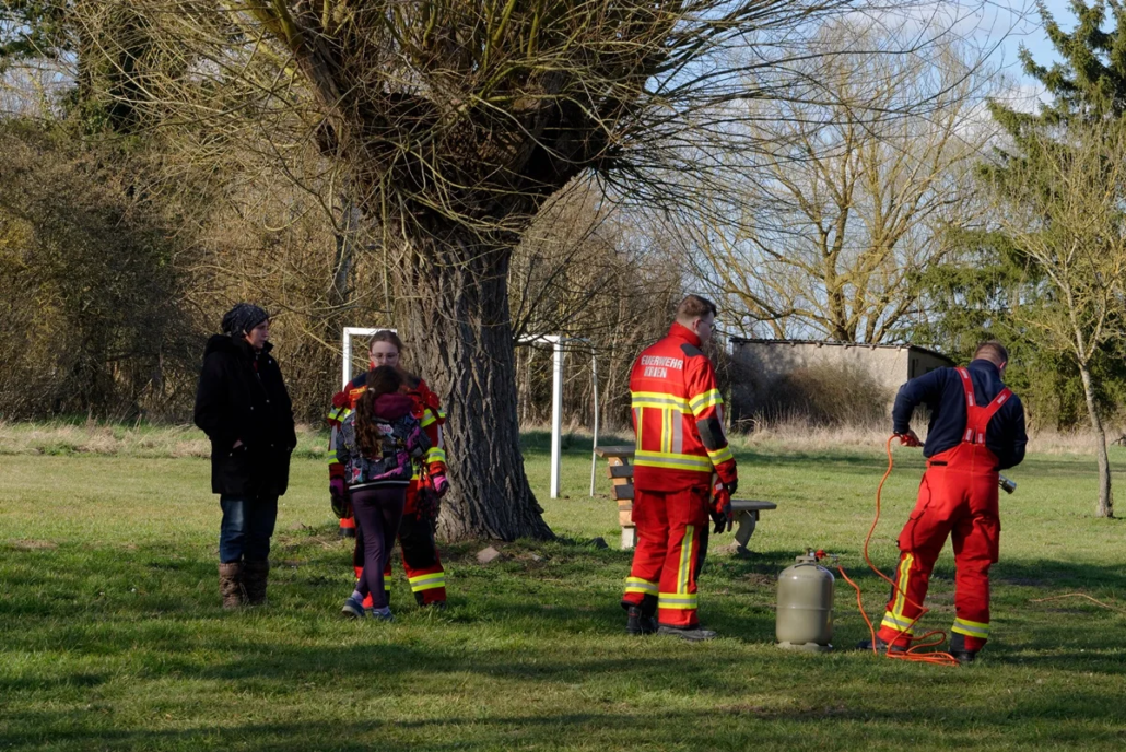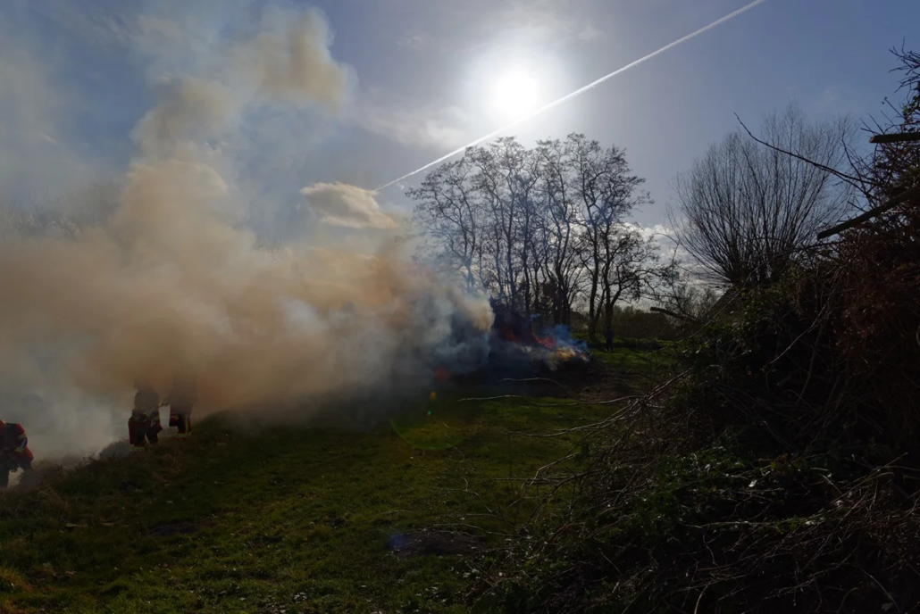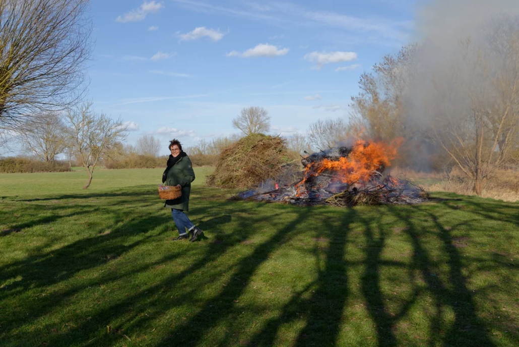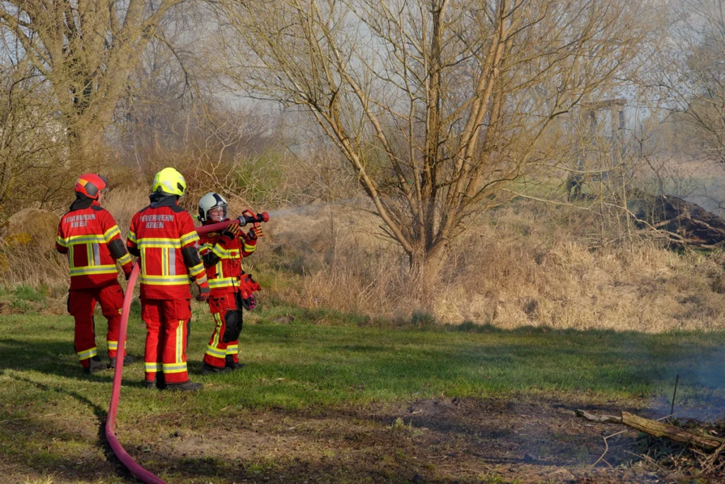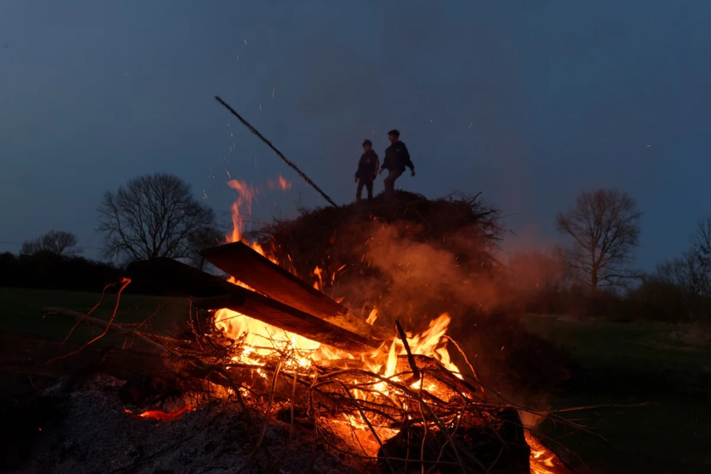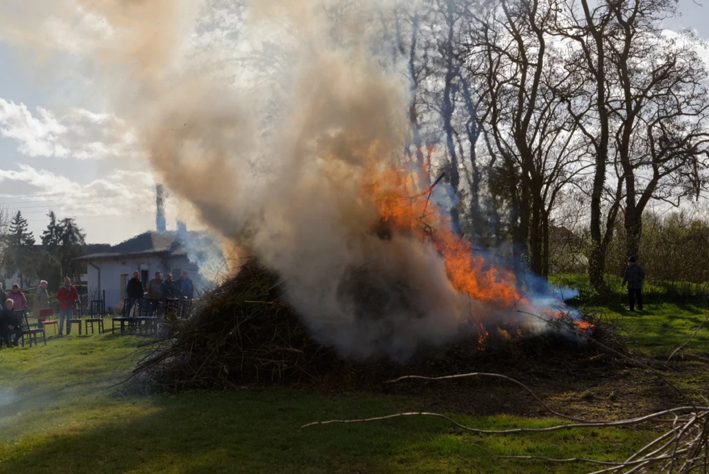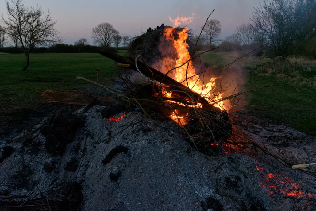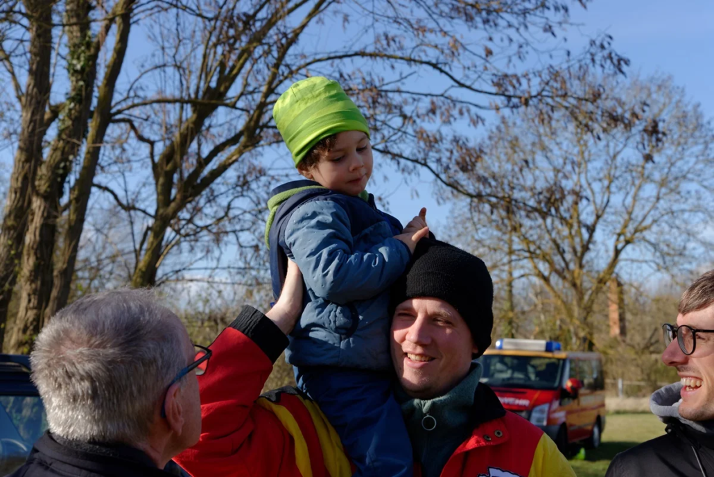 Am Ostersamstag um 17:00 Uhr erwartete uns sonniges Frühlingswetter mit einer leichten Brise, als die Kriener Feuerwehr das Osterfeuer entzündete. Schon nach kurzer Zeit loderten meterhohe Flammen und verschlangen den großen Holzhaufen. Es war beeindruckend – und auch lehrreich – zu sehen, wie Feuer selbst über 20 Meter hinweg Funken schlagen und an anderer Stelle neu entfachen kann. Doch die Kriener Feuerwehr hatte alles sicher im Griff. Svenja zeigte in ihrem neuen Schutzanzug vollen Einsatz – großartig!