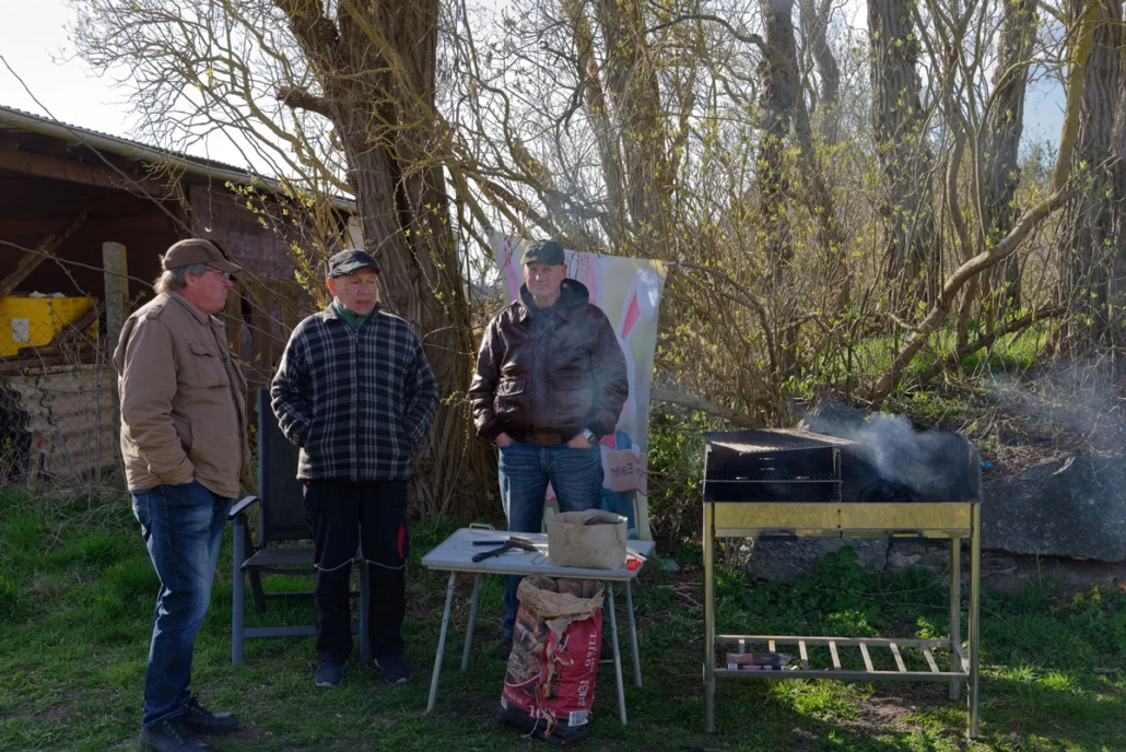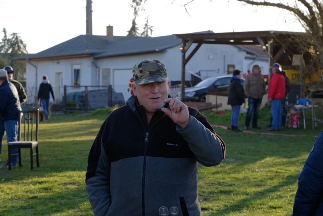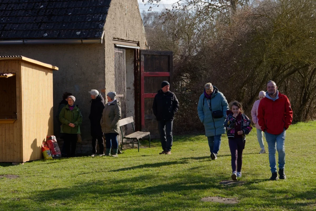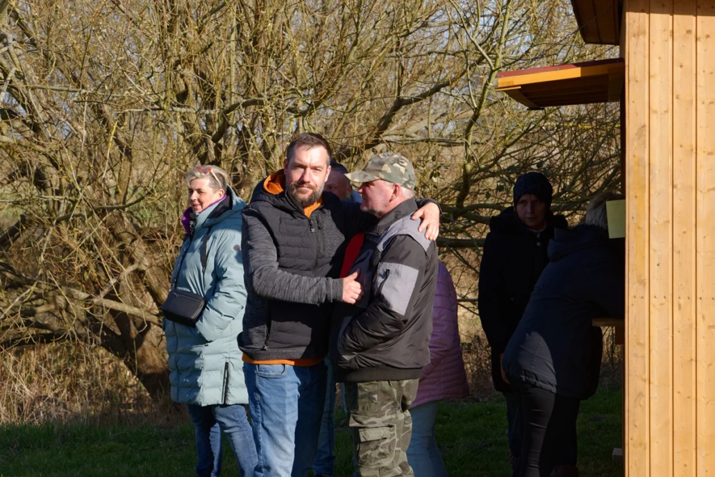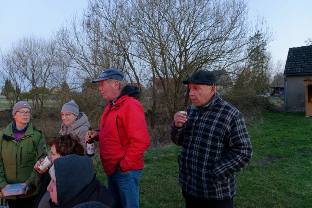 Etwa eine Stunde später war der Wind mild, der Himmel klar – und die Stimmung rundum entspannt. Für das leibliche Wohl war bestens gesorgt: Bratwurst mit Brot, dazu Bier, Prosecco, Cola und Wasser. Ralf & Horst am Grill sowie Moni & Doris an der Getränkeausgabe hatten alles fest im Griff. Dank Ellen gab es auch Glühwein und Hubertus Tropfen gegen Alltagskrankheiten.